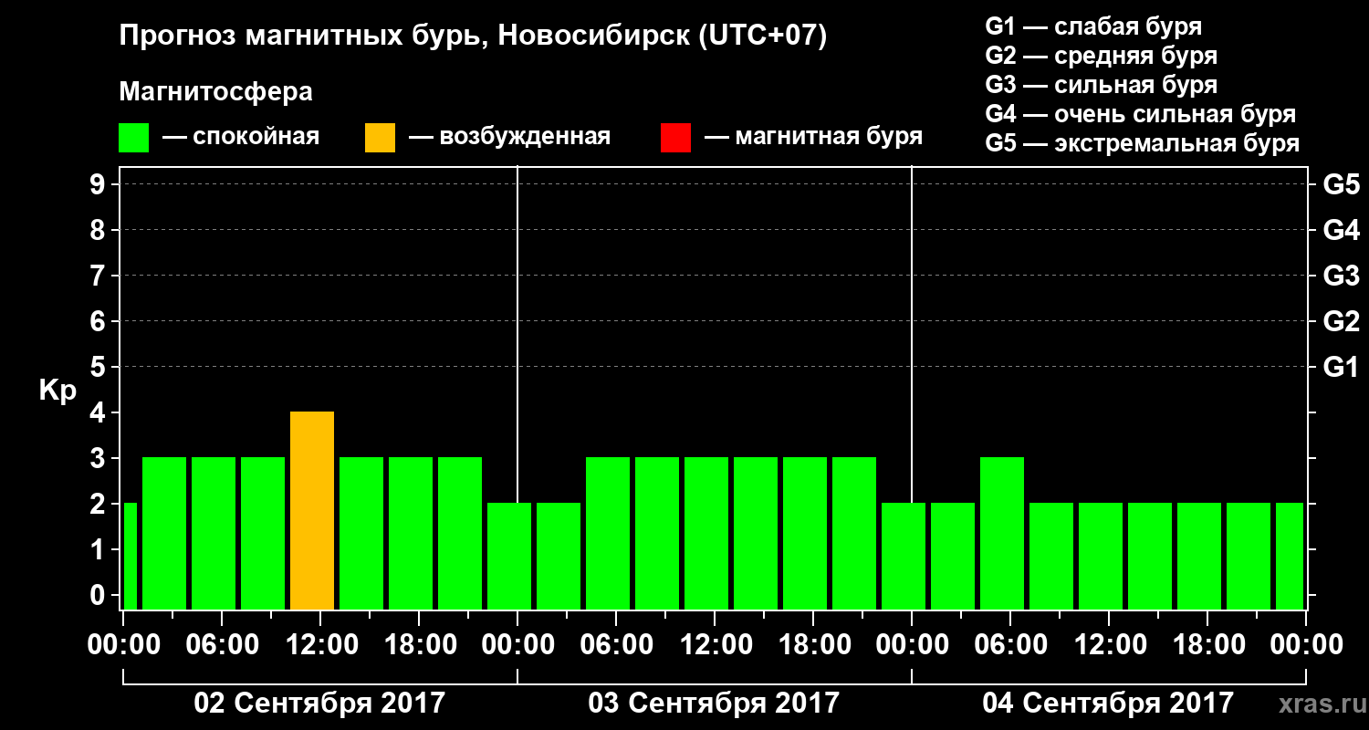 Прогноз магнитных бурь в Новосибирске — 2 сентября 2017 года