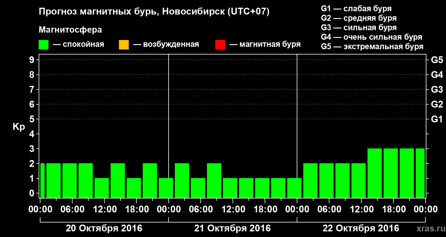Прогноз магнитных бурь в Новосибирске — 20 октября 2016 года