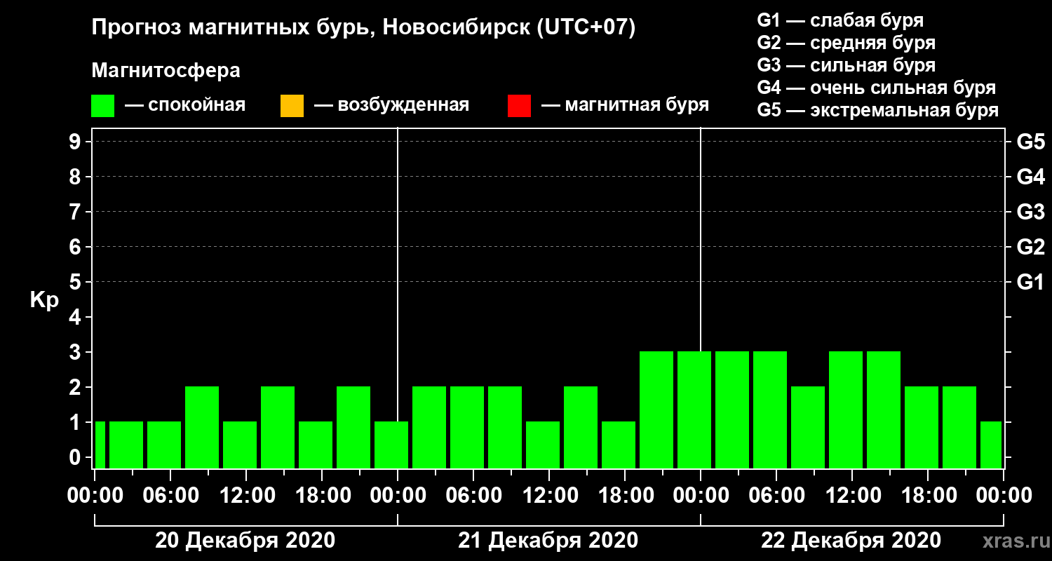 Прогноз магнитных бурь в Новосибирске — 20 декабря 2020 года