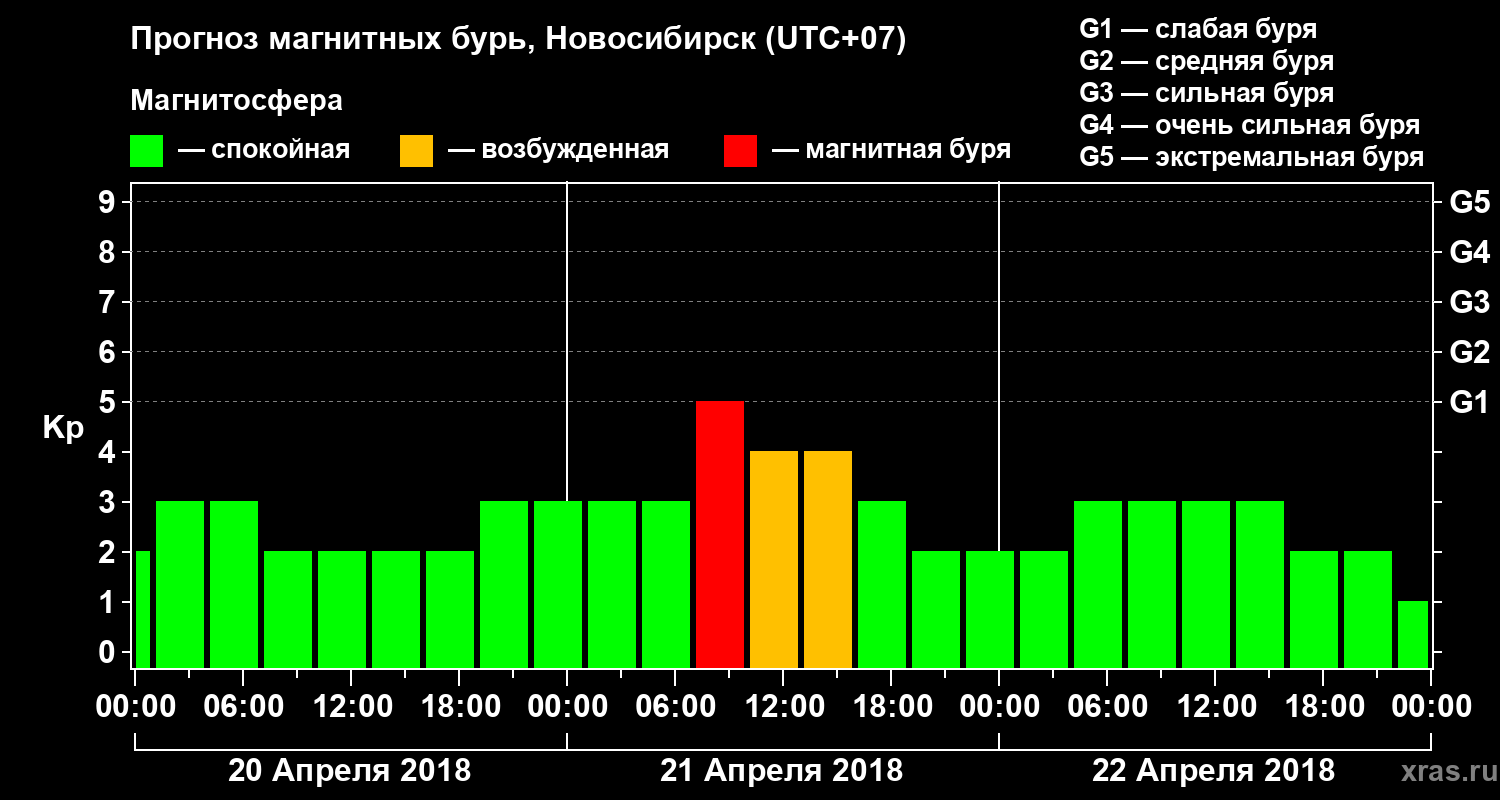 Прогноз магнитных бурь в Новосибирске — 20 апреля 2018 года