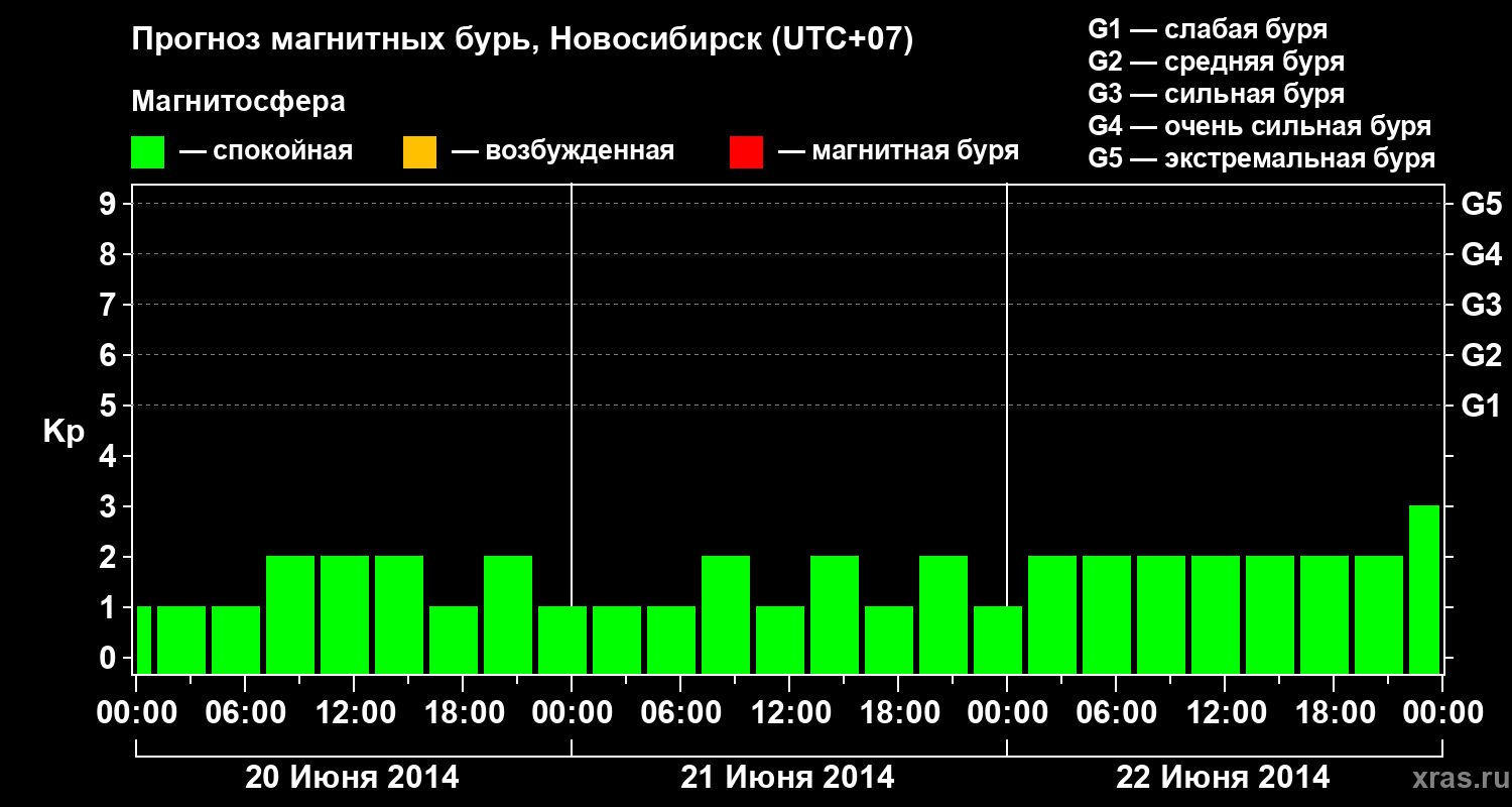 Прогноз магнитных бурь в Новосибирске — 20 июня 2014 года
