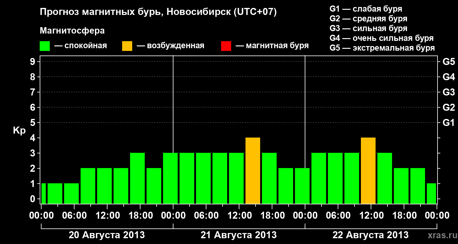 Прогноз магнитных бурь в Новосибирске — 20 августа 2013 года