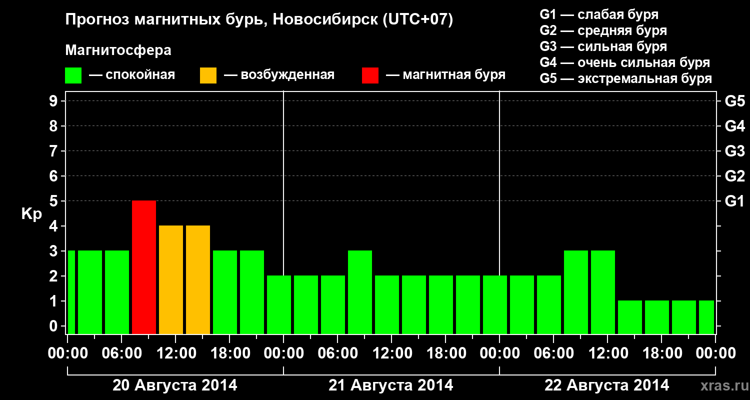 Прогноз магнитных бурь в Новосибирске — 20 августа 2014 года