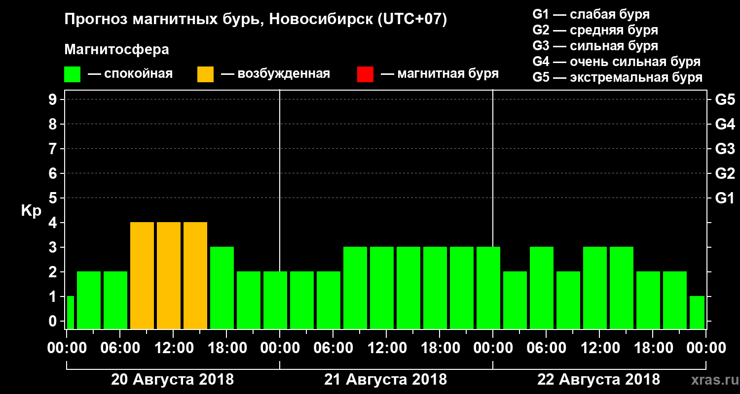 Прогноз магнитных бурь в Новосибирске на 20 августа 2018 года