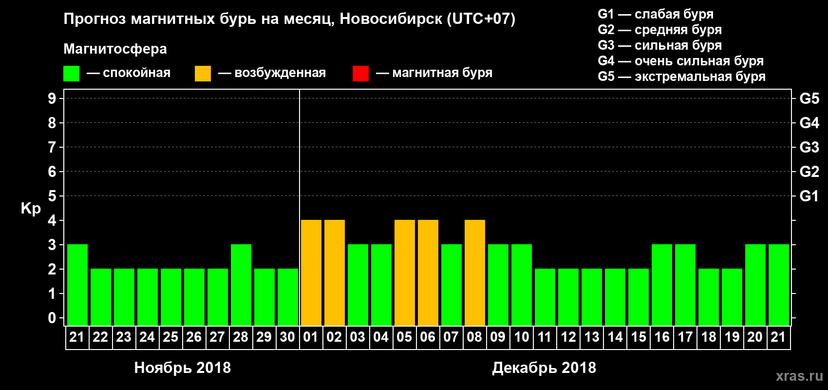 Прогноз магнитных бурь в Новосибирске — 21 ноября 2018 года