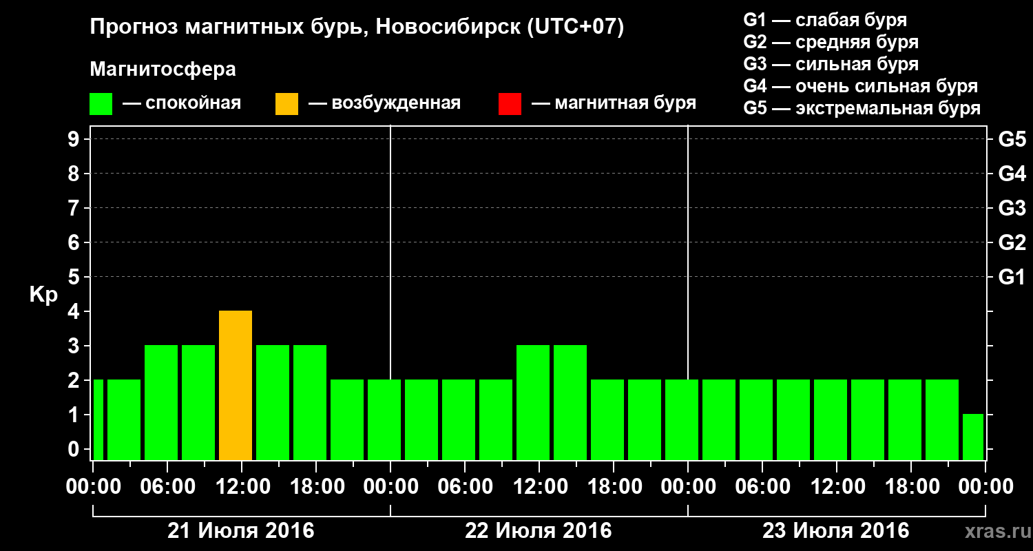Прогноз магнитных бурь в Новосибирске — 21 июля 2016 года