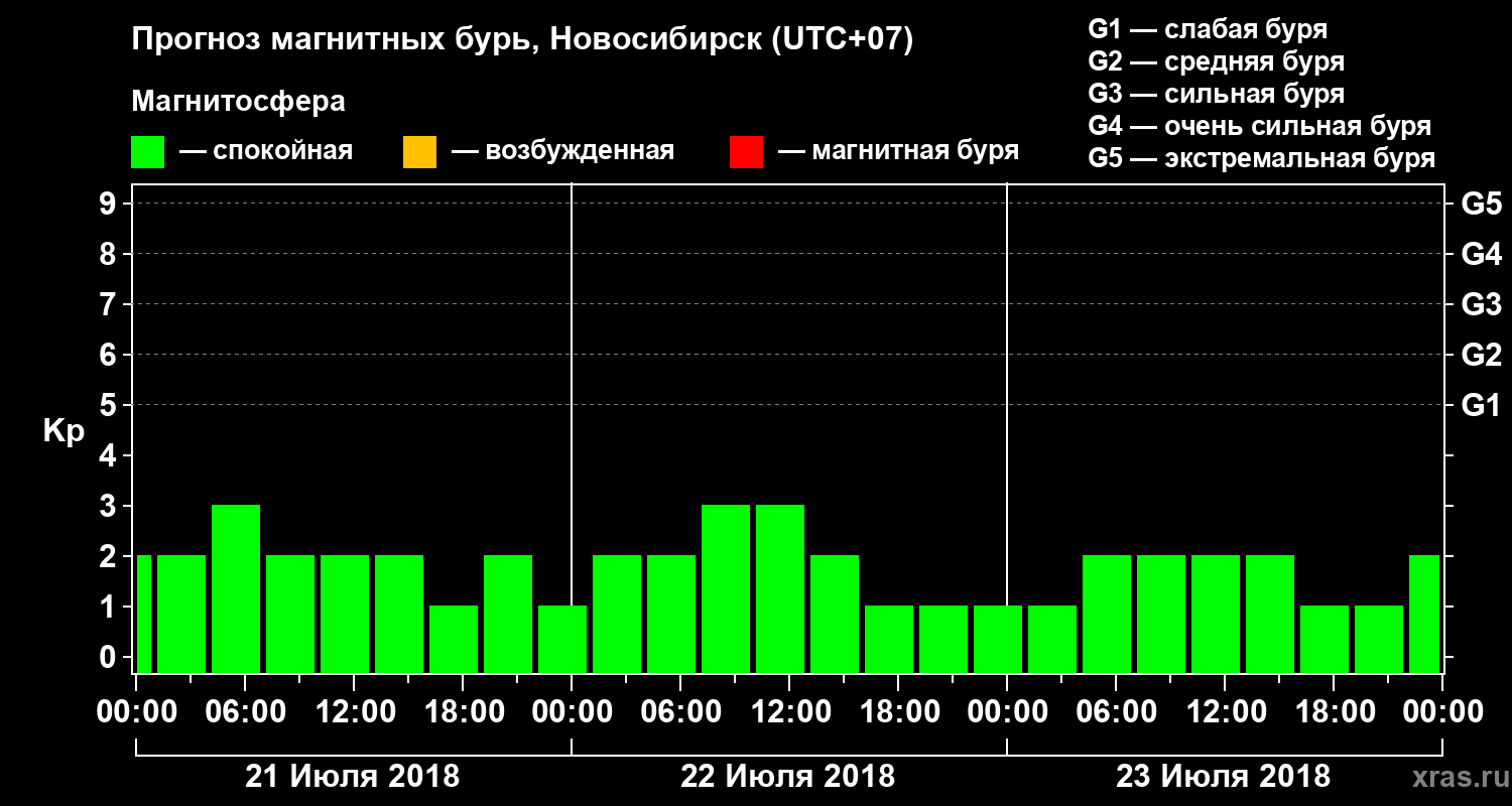 Прогноз магнитных бурь в Новосибирске — 21 июля 2018 года