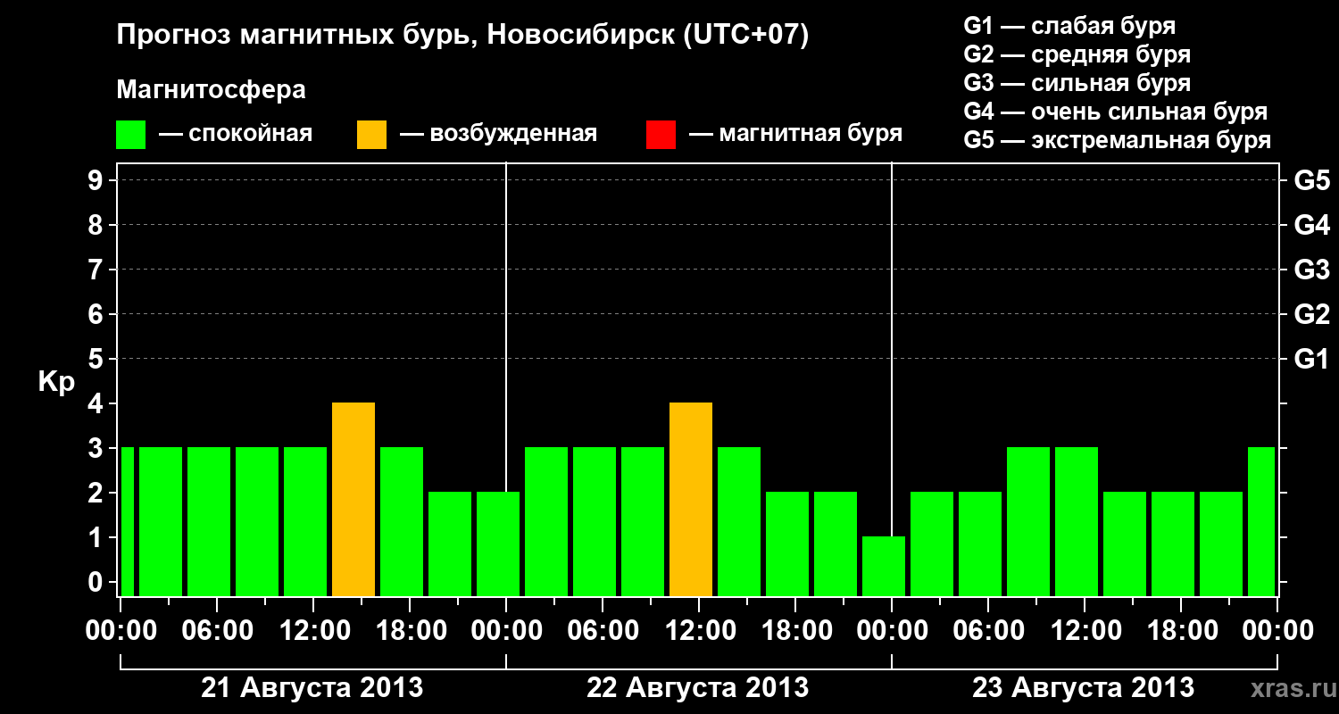 Прогноз магнитных бурь в Новосибирске — 21 августа 2013 года