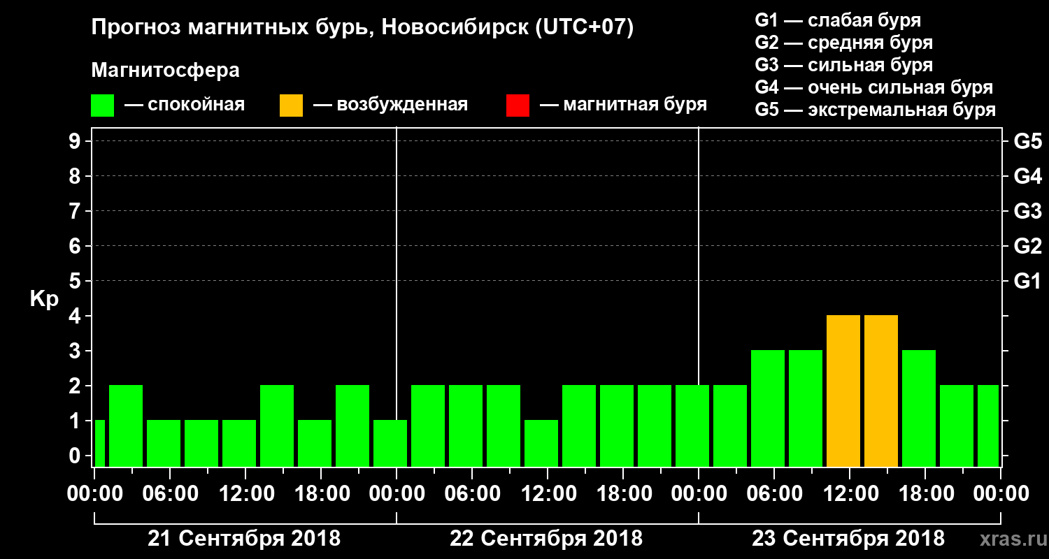 Прогноз магнитных бурь в Новосибирске на 21 сентября 2018 года