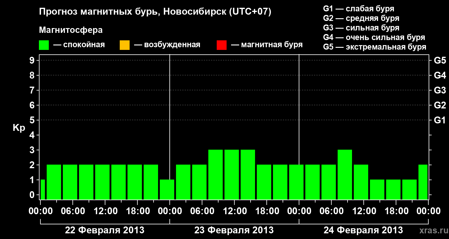 Прогноз магнитных бурь в Новосибирске — 22 февраля 2013 года