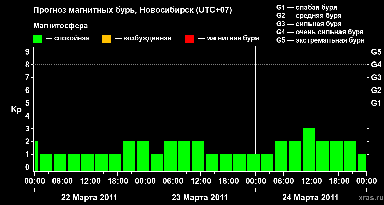 Прогноз магнитных бурь в Новосибирске — 22 марта 2011 года