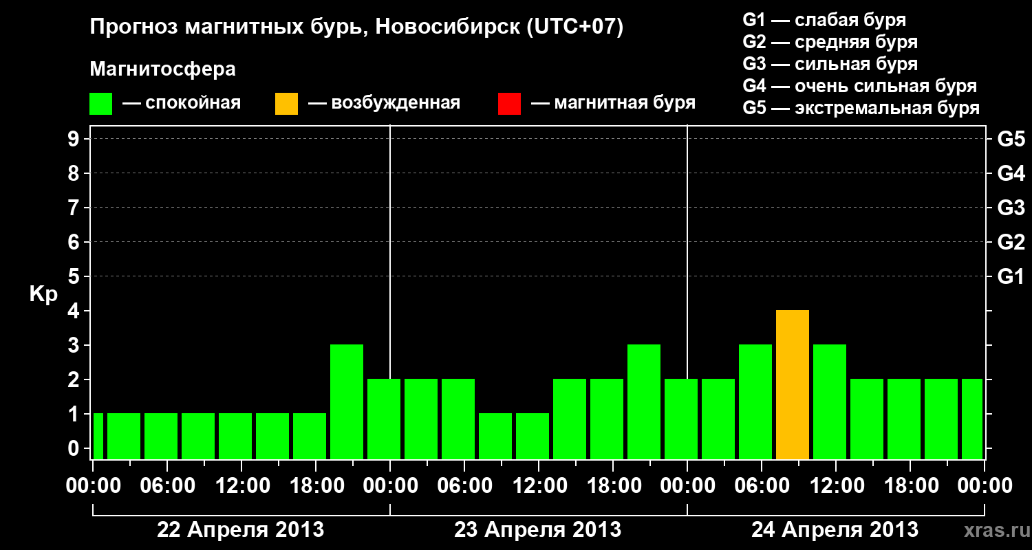 Прогноз магнитных бурь в Новосибирске — 22 апреля 2013 года