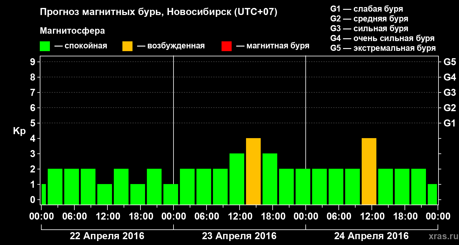 Прогноз магнитных бурь в Новосибирске — 22 апреля 2016 года