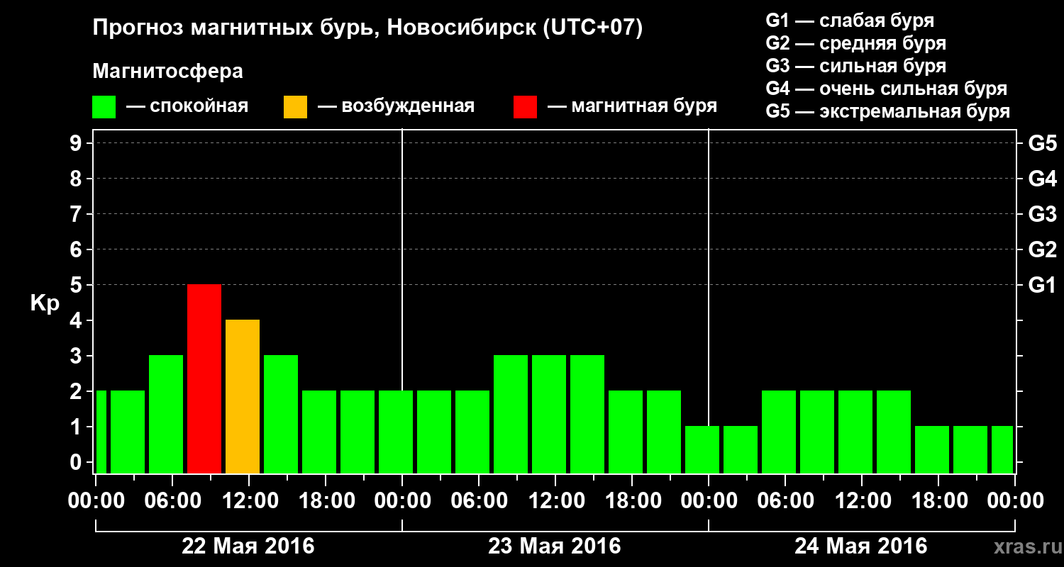 Прогноз магнитных бурь в Новосибирске — 22 мая 2016 года