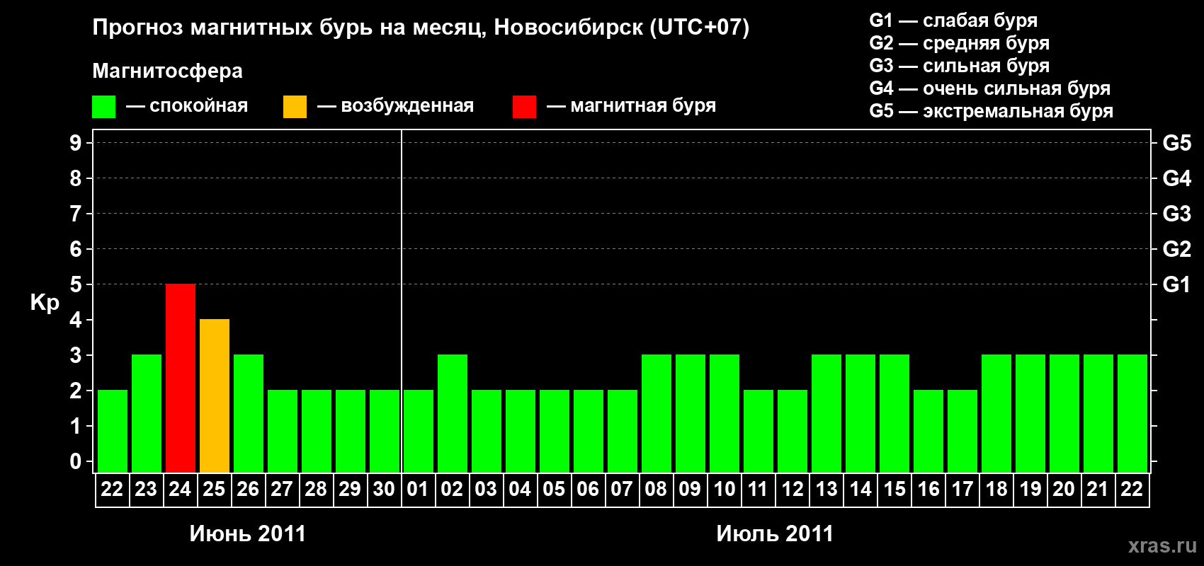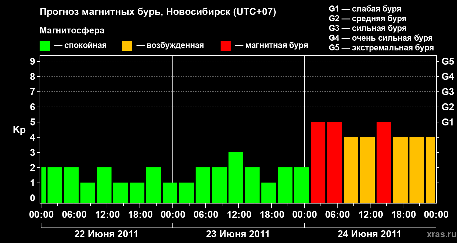 Прогноз магнитных бурь в Новосибирске — 22 июня 2011 года