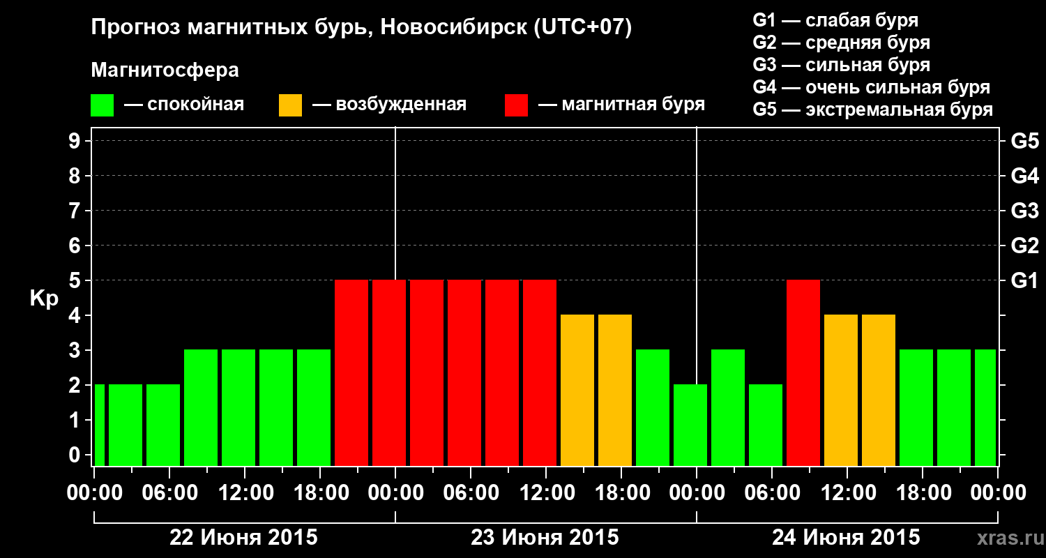 Прогноз магнитных бурь в Новосибирске — 22 июня 2015 года