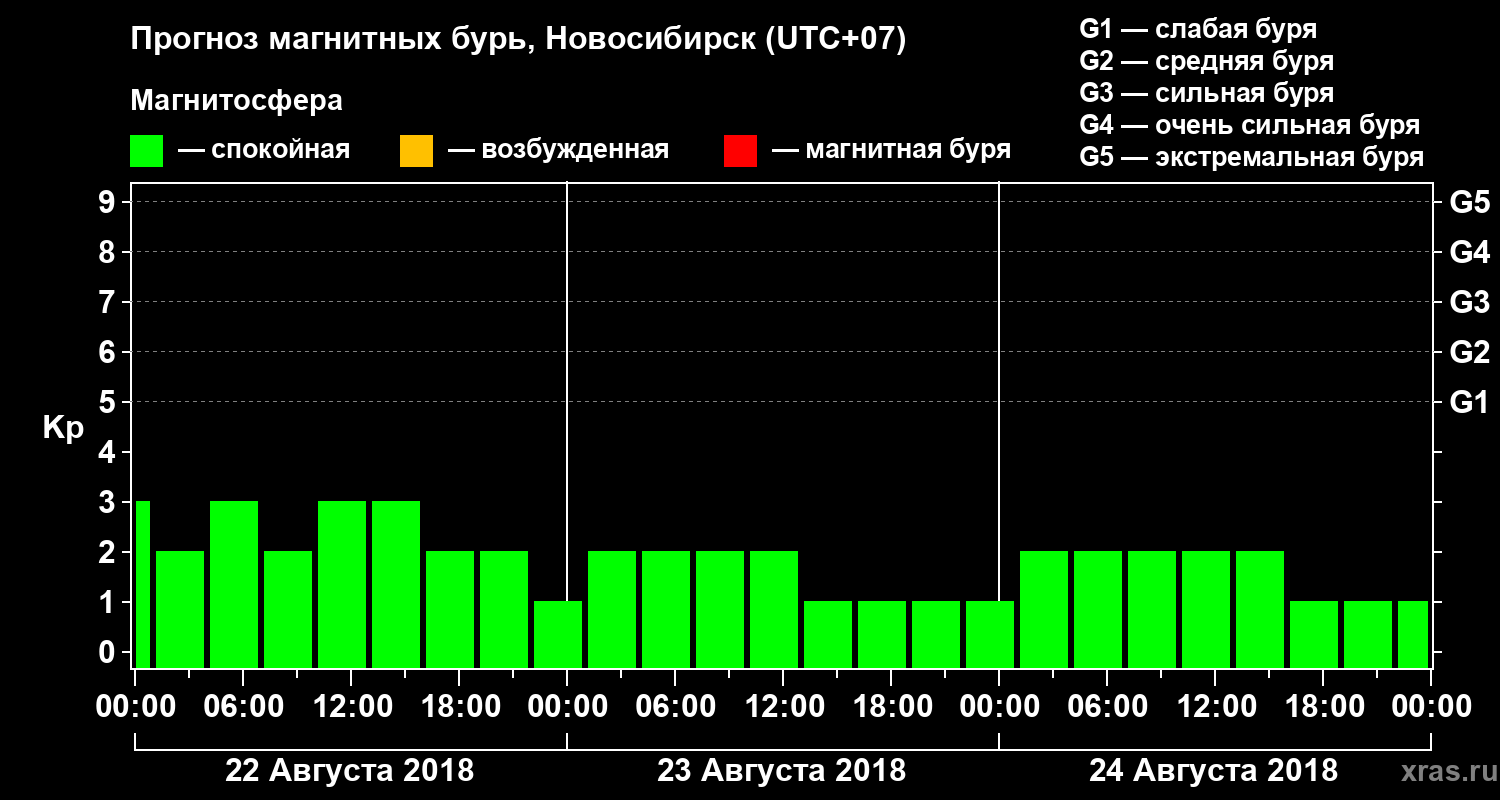 Прогноз магнитных бурь в Новосибирске на 22 августа 2018 года