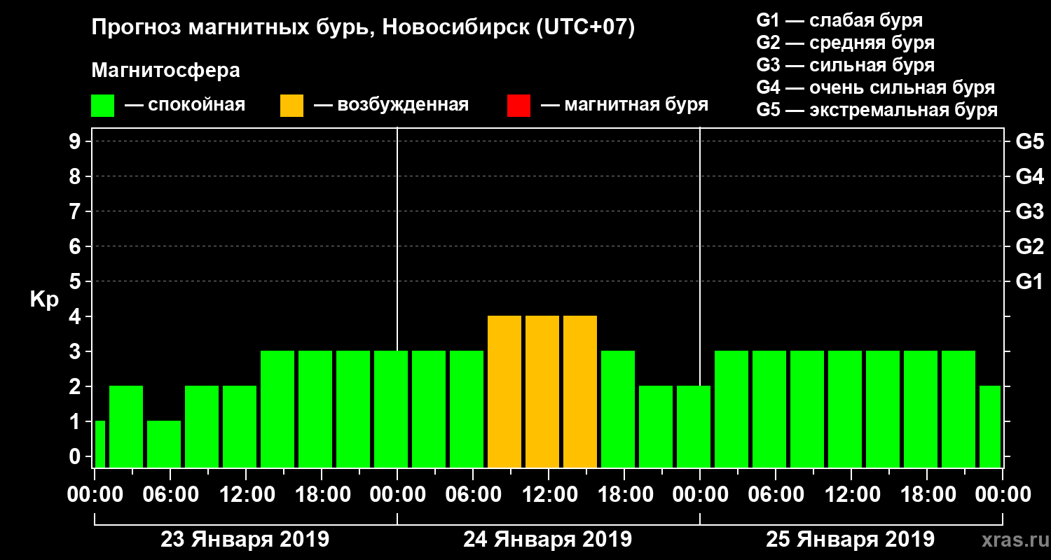 Прогноз магнитных бурь в Новосибирске на 23 января 2019 года