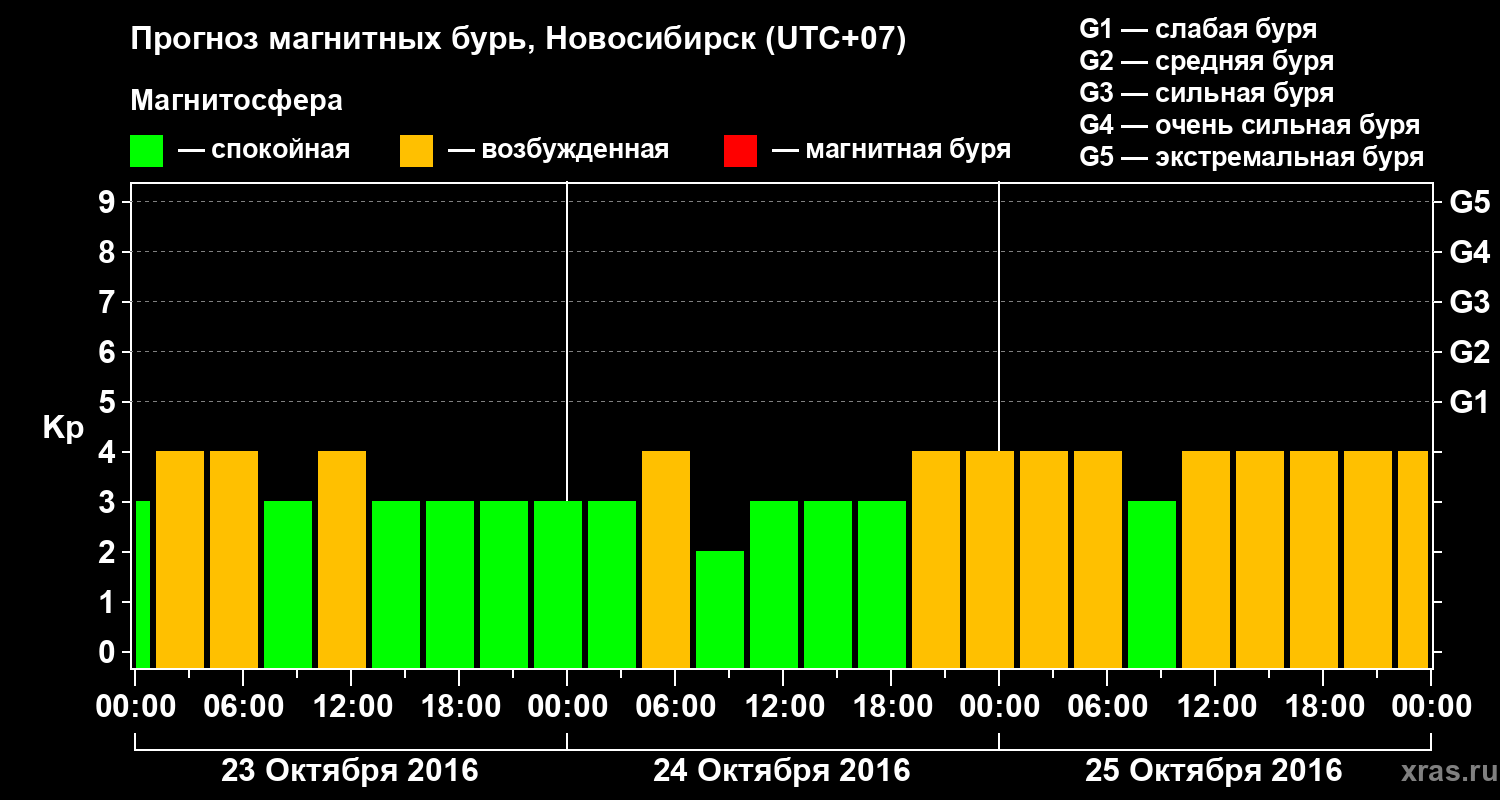 Прогноз магнитных бурь в Новосибирске — 23 октября 2016 года