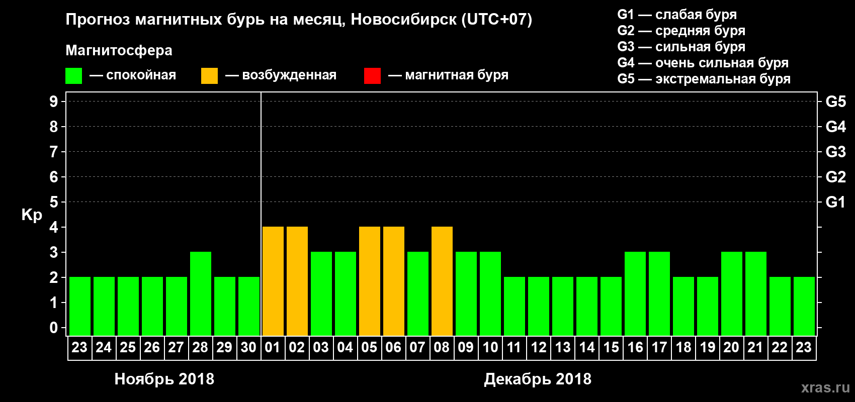 Прогноз магнитных бурь в Новосибирске на 23 ноября 2018 года