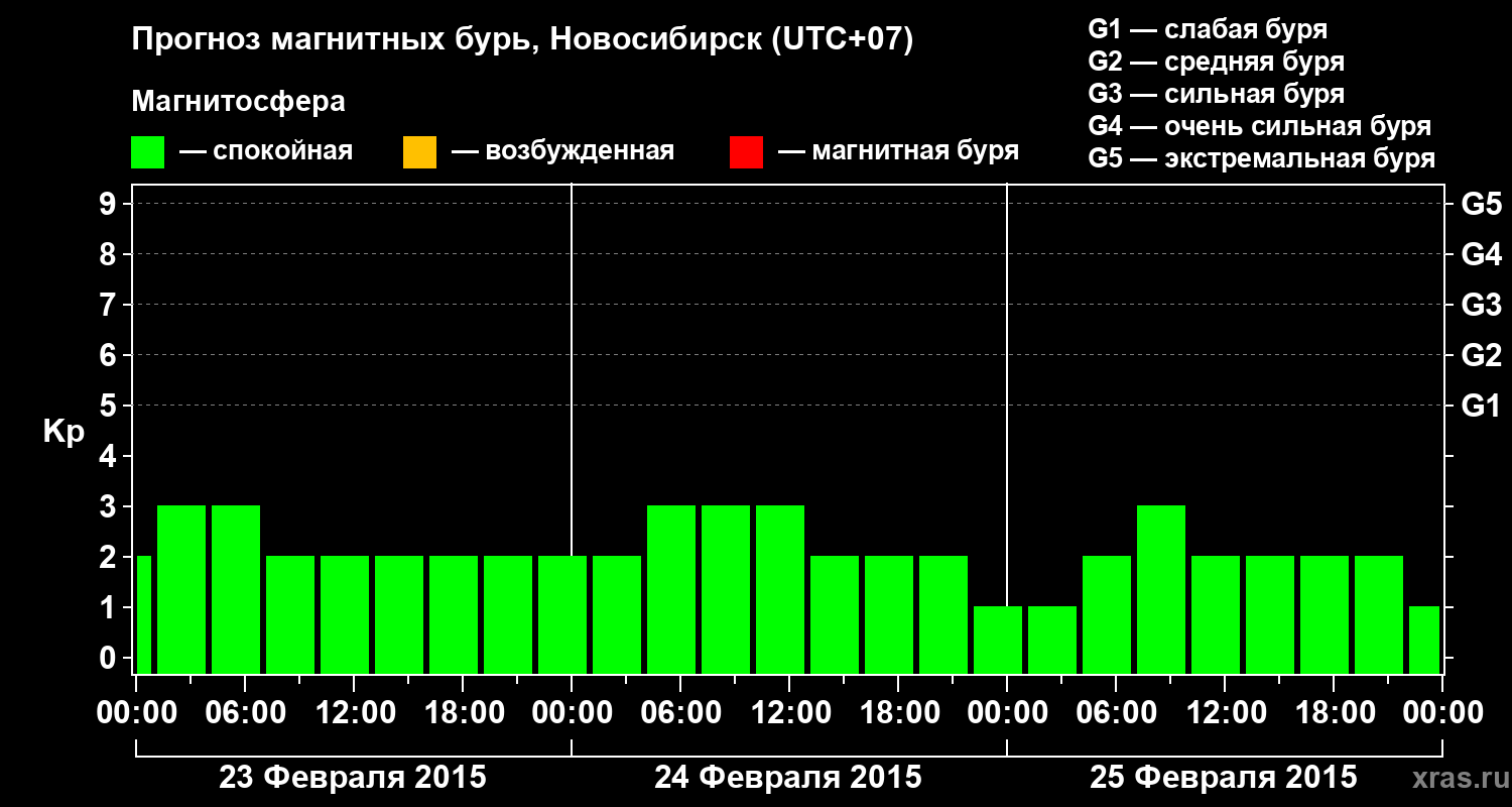 Прогноз магнитных бурь в Новосибирске — 23 февраля 2015 года