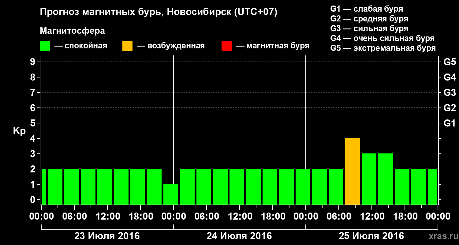 Прогноз магнитных бурь в Новосибирске — 23 июля 2016 года