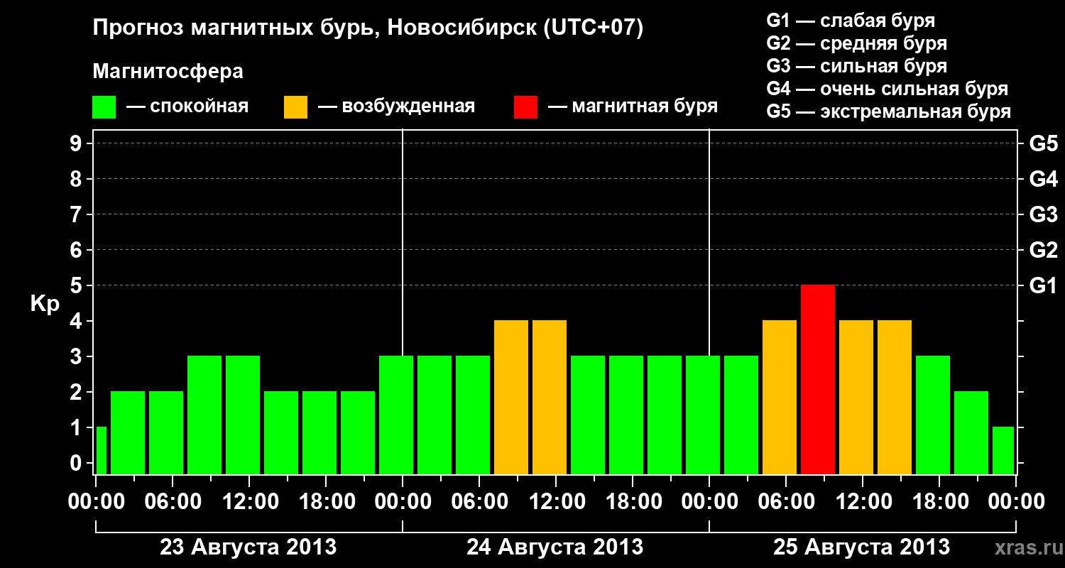 Прогноз магнитных бурь в Новосибирске — 23 августа 2013 года