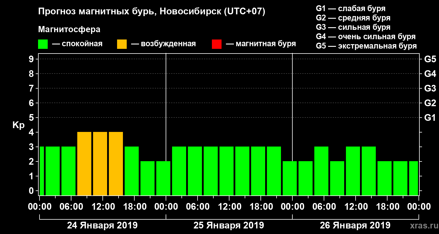 Прогноз магнитных бурь в Новосибирске на 24 января 2019 года