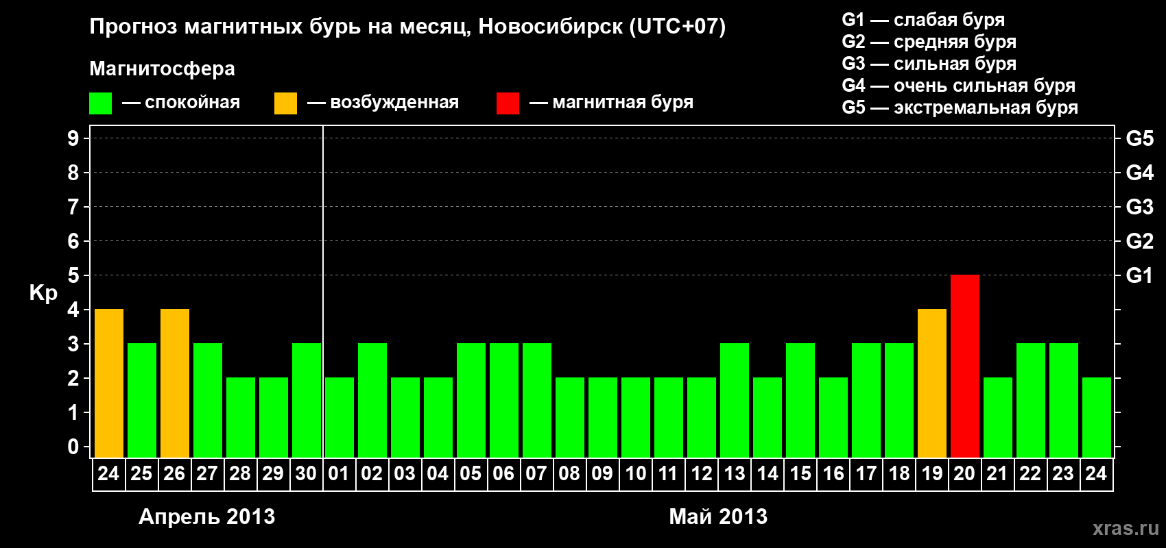 Прогноз магнитных бурь в Новосибирске — 24 апреля 2013 года
