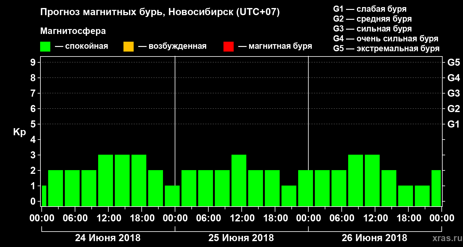 Прогноз магнитных бурь в Новосибирске — 24 июня 2018 года
