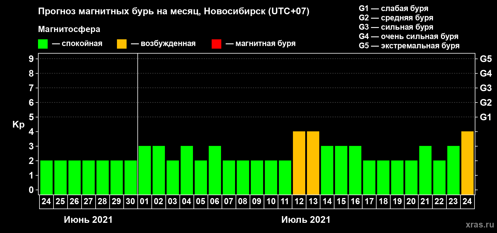 Прогноз магнитных бурь в Новосибирске — 24 июня 2021 года