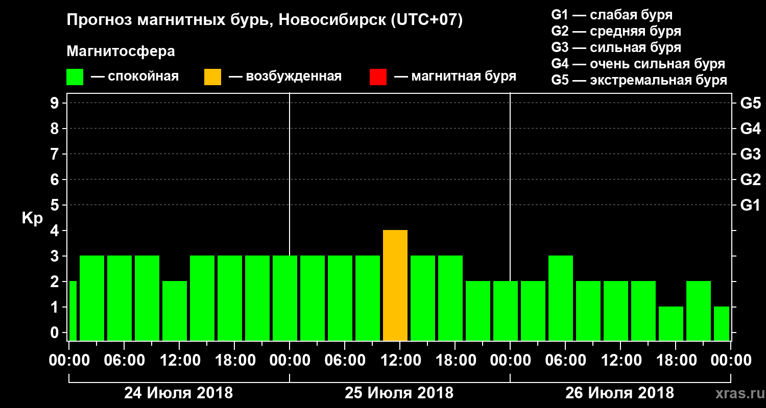 Прогноз магнитных бурь в Новосибирске — 24 июля 2018 года