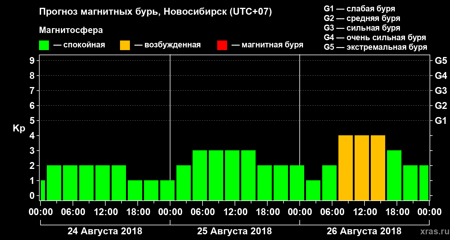 Прогноз магнитных бурь в Новосибирске на 24 августа 2018 года