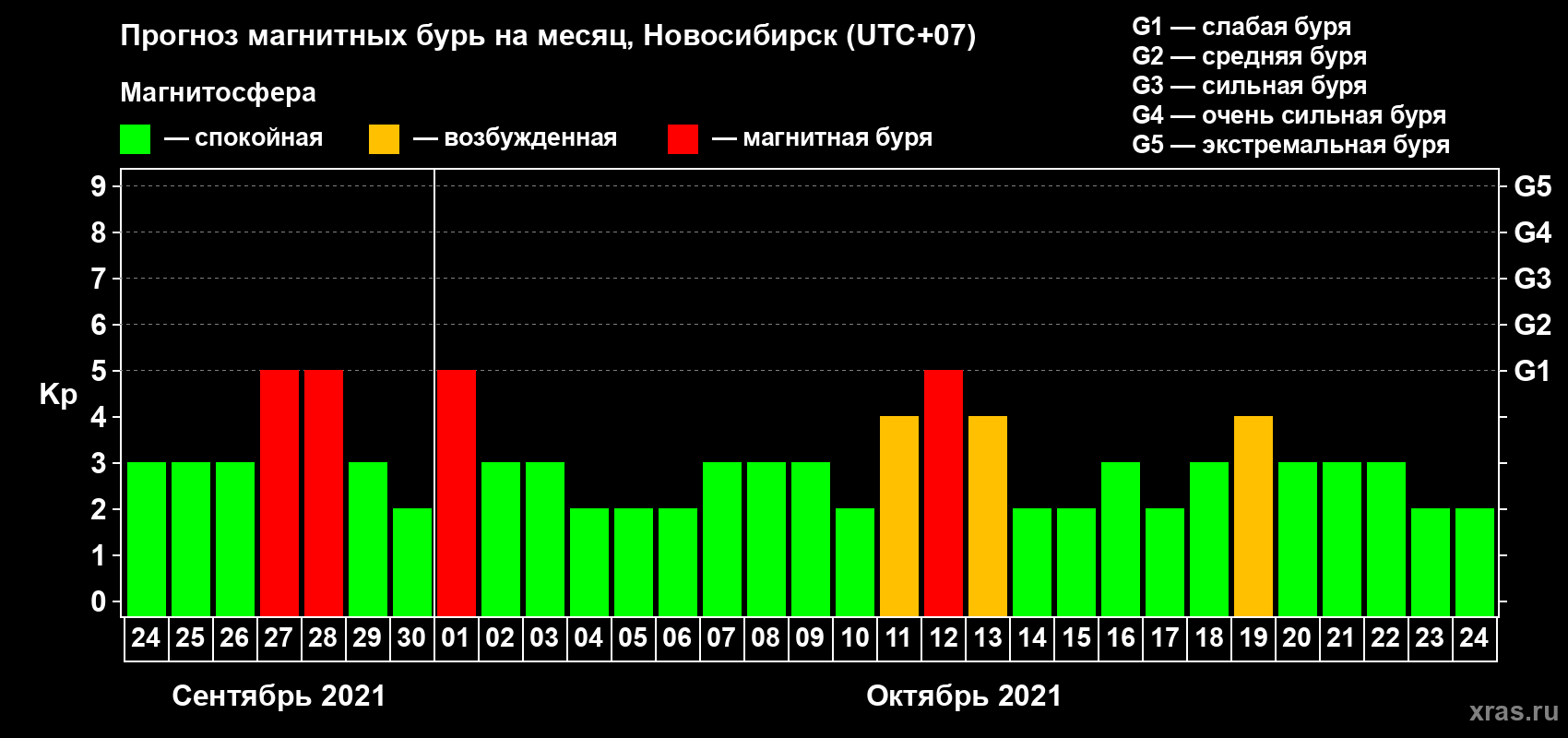 Прогноз магнитных бурь в Новосибирске — 24 сентября 2021 года