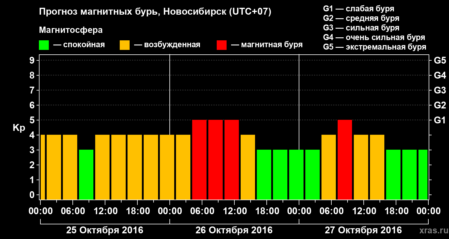 Прогноз магнитных бурь в Новосибирске — 25 октября 2016 года