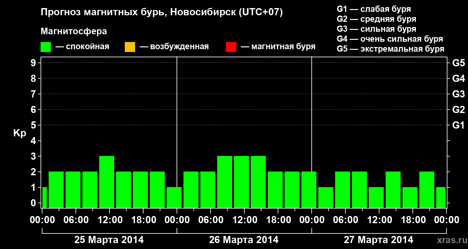 Прогноз магнитных бурь в Новосибирске — 25 марта 2014 года