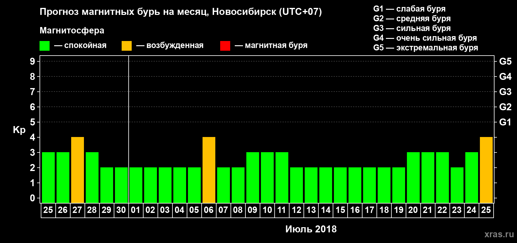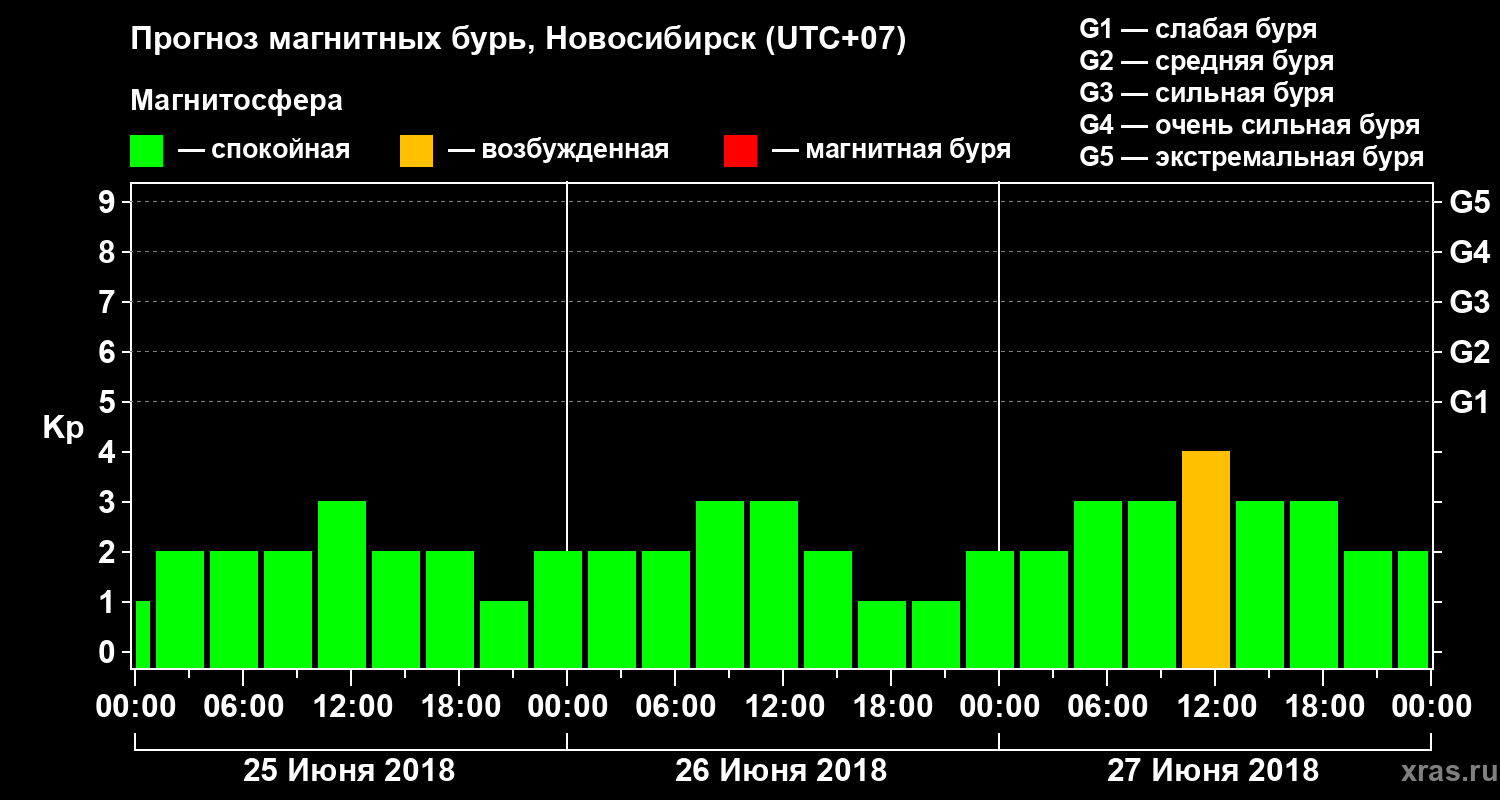 Прогноз магнитных бурь в Новосибирске — 25 июня 2018 года