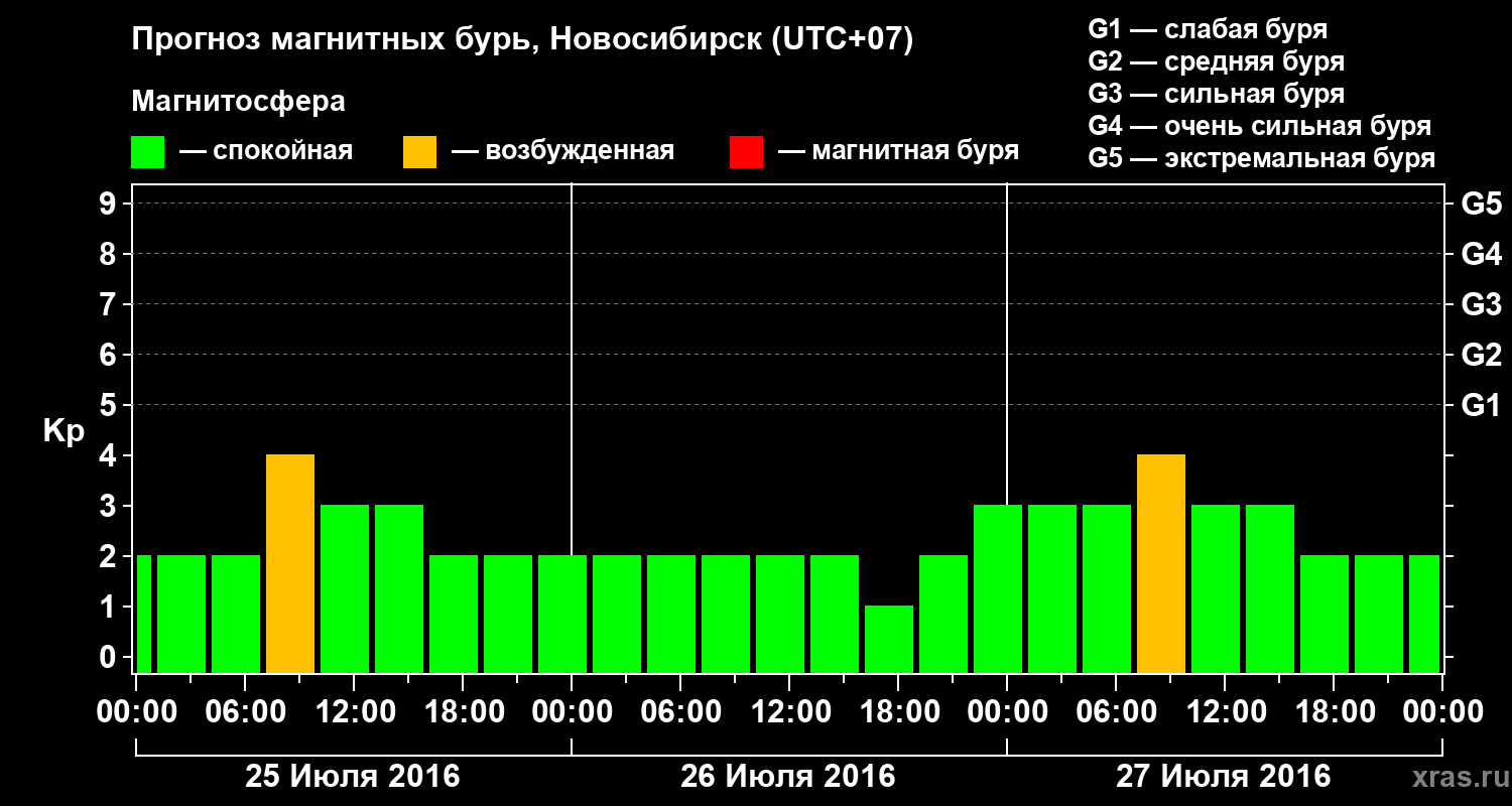 Прогноз магнитных бурь в Новосибирске — 25 июля 2016 года