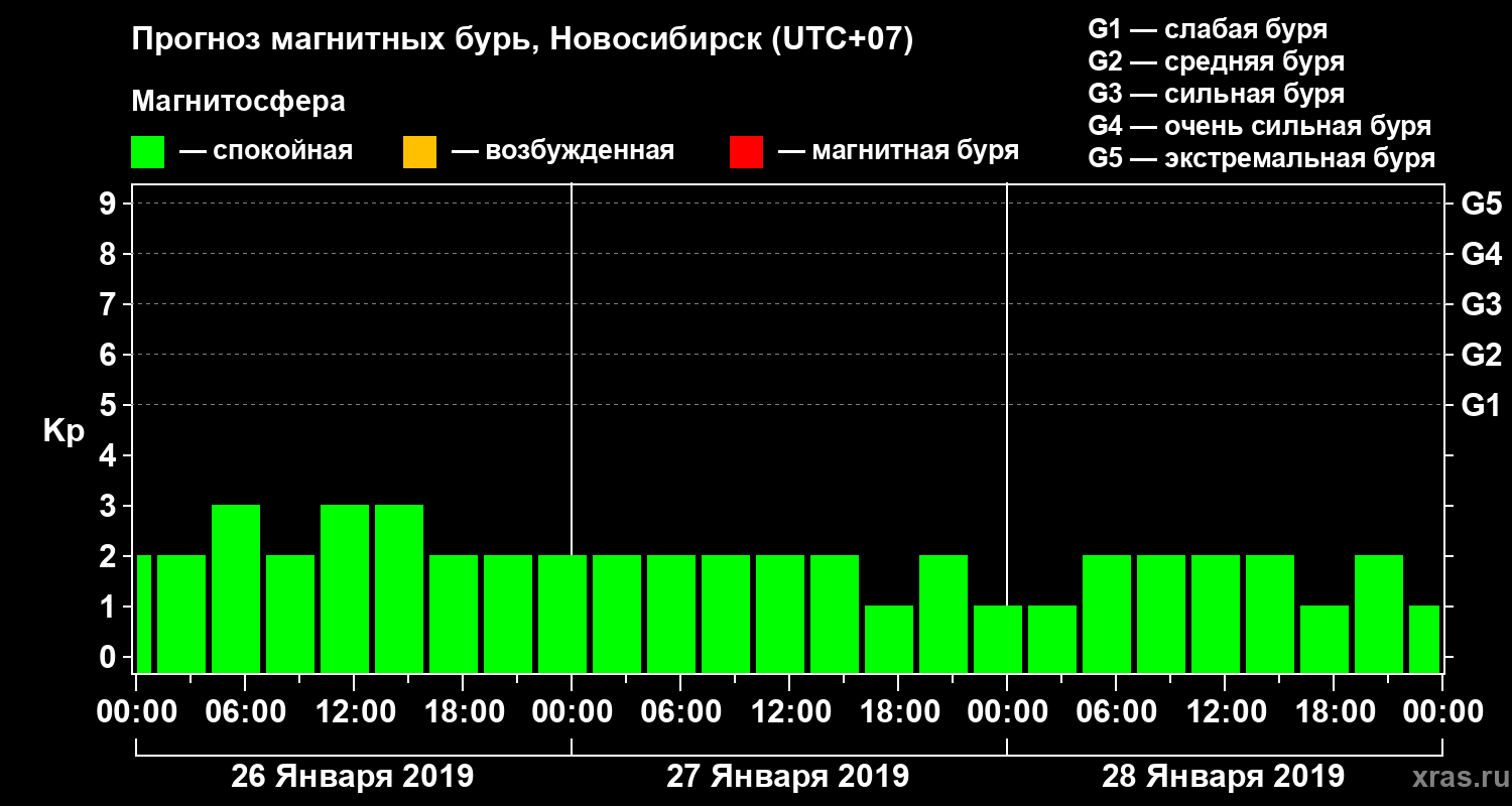 Прогноз магнитных бурь в Новосибирске на 26 января 2019 года