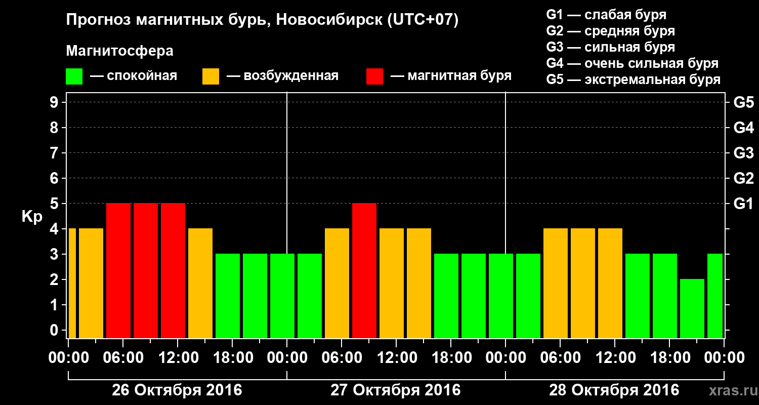 Прогноз магнитных бурь в Новосибирске — 26 октября 2016 года