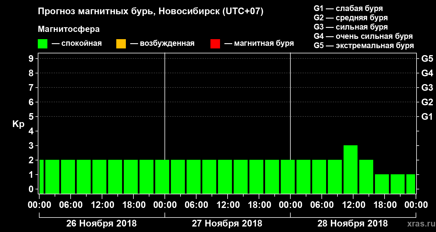 Прогноз магнитных бурь в Новосибирске — 26 ноября 2018 года
