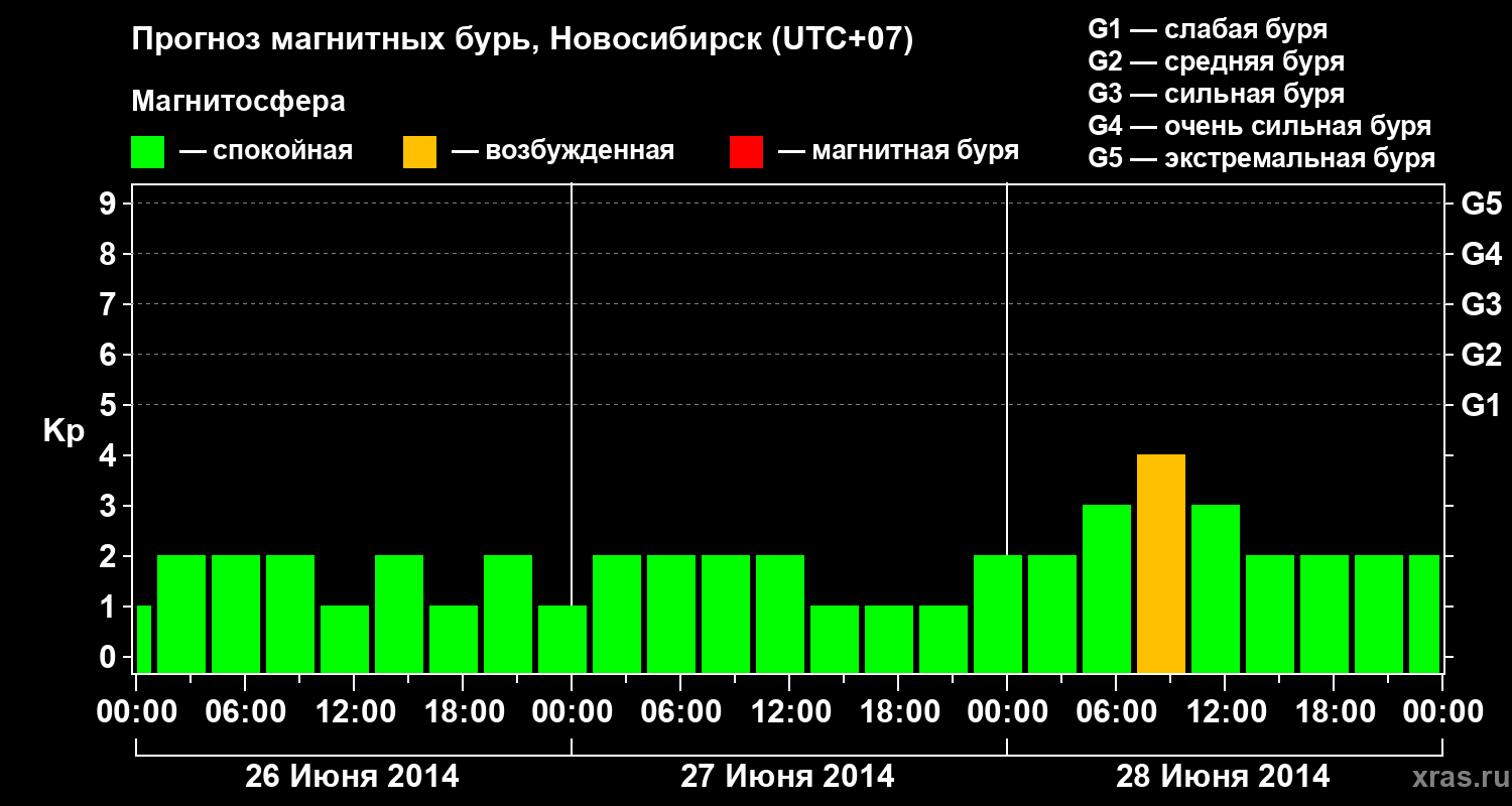 Прогноз магнитных бурь в Новосибирске — 26 июня 2014 года