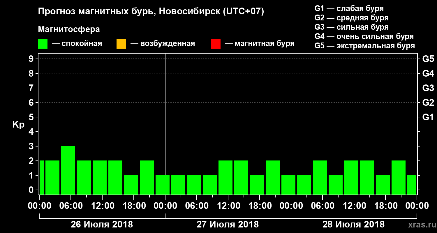 Прогноз магнитных бурь в Новосибирске — 26 июля 2018 года