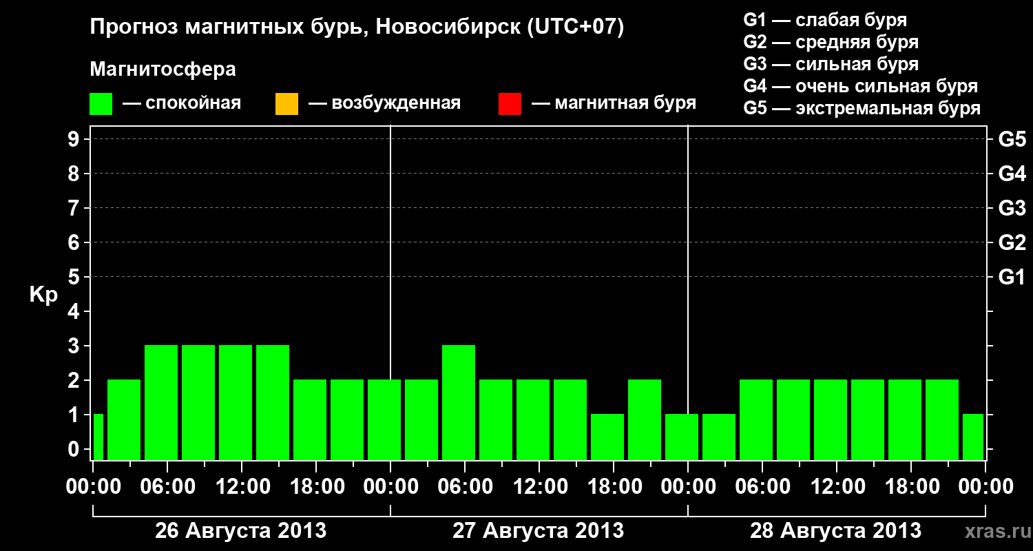Прогноз магнитных бурь в Новосибирске — 26 августа 2013 года