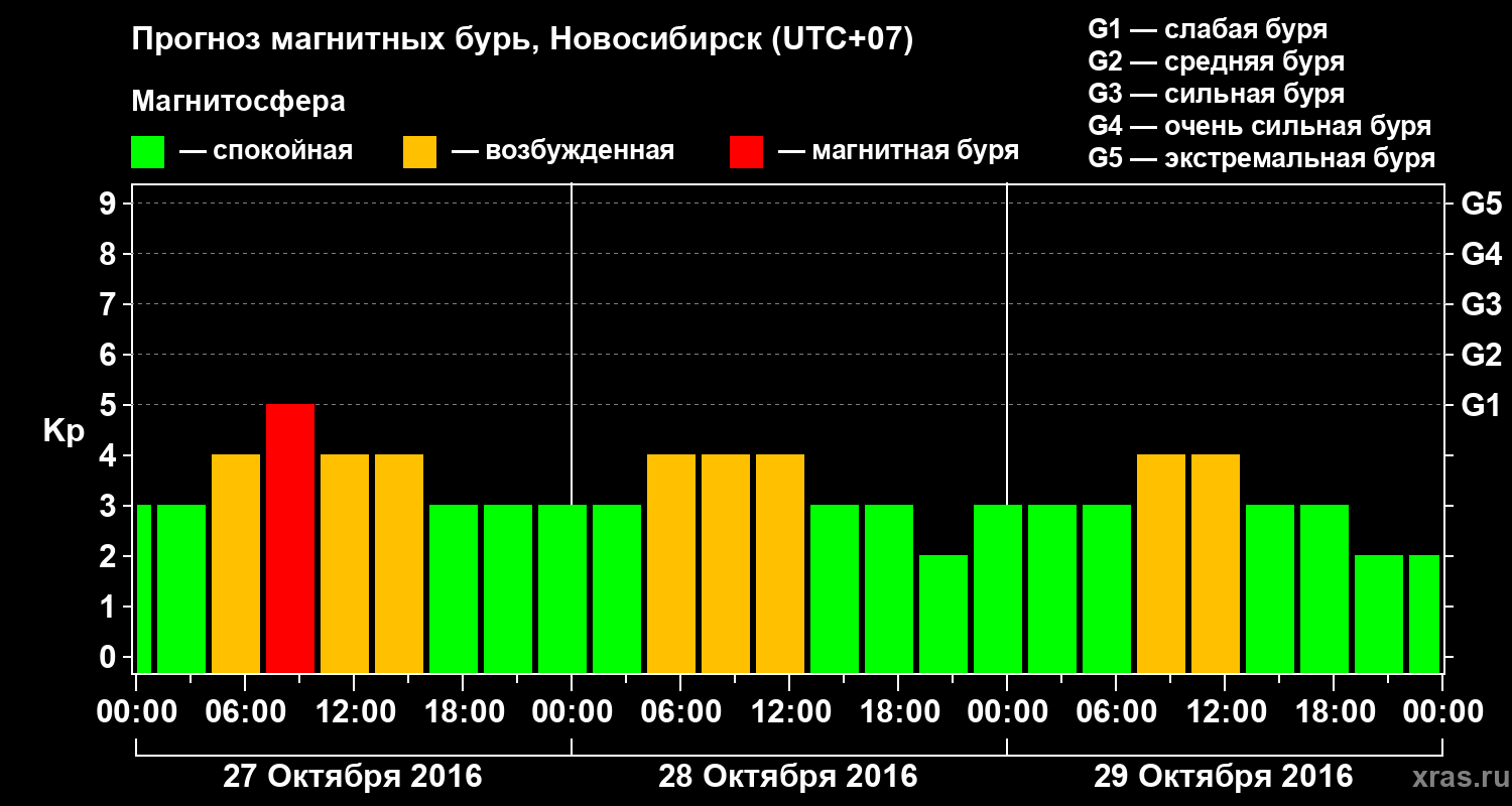 Прогноз магнитных бурь в Новосибирске — 27 октября 2016 года