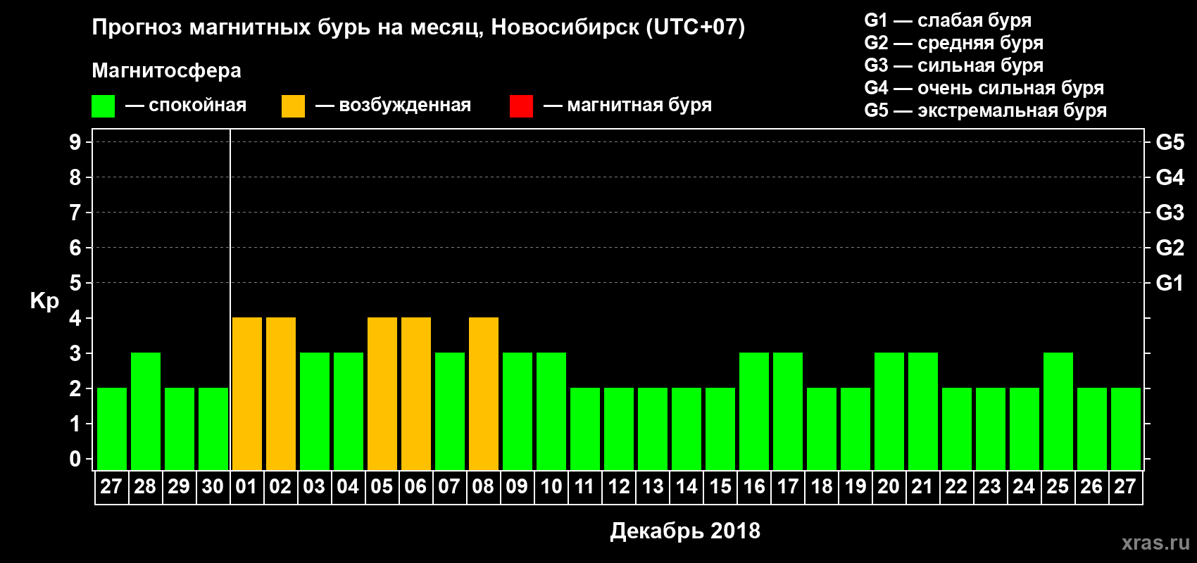 Прогноз магнитных бурь в Новосибирске — 27 ноября 2018 года