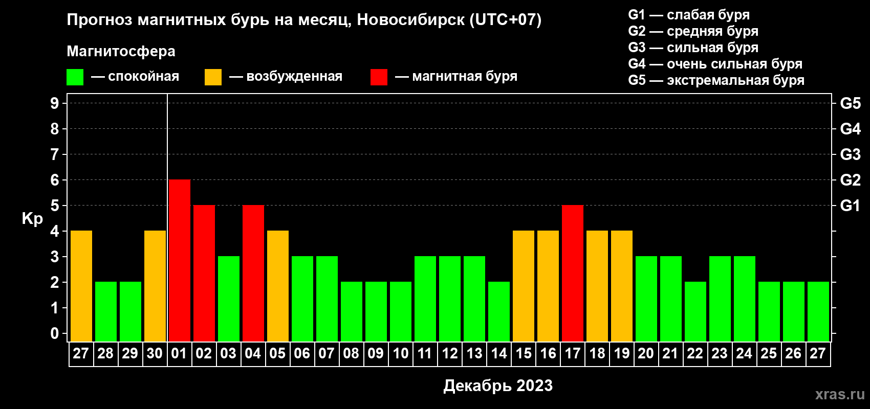 Прогноз магнитных бурь в Новосибирске — 27 ноября 2023 года