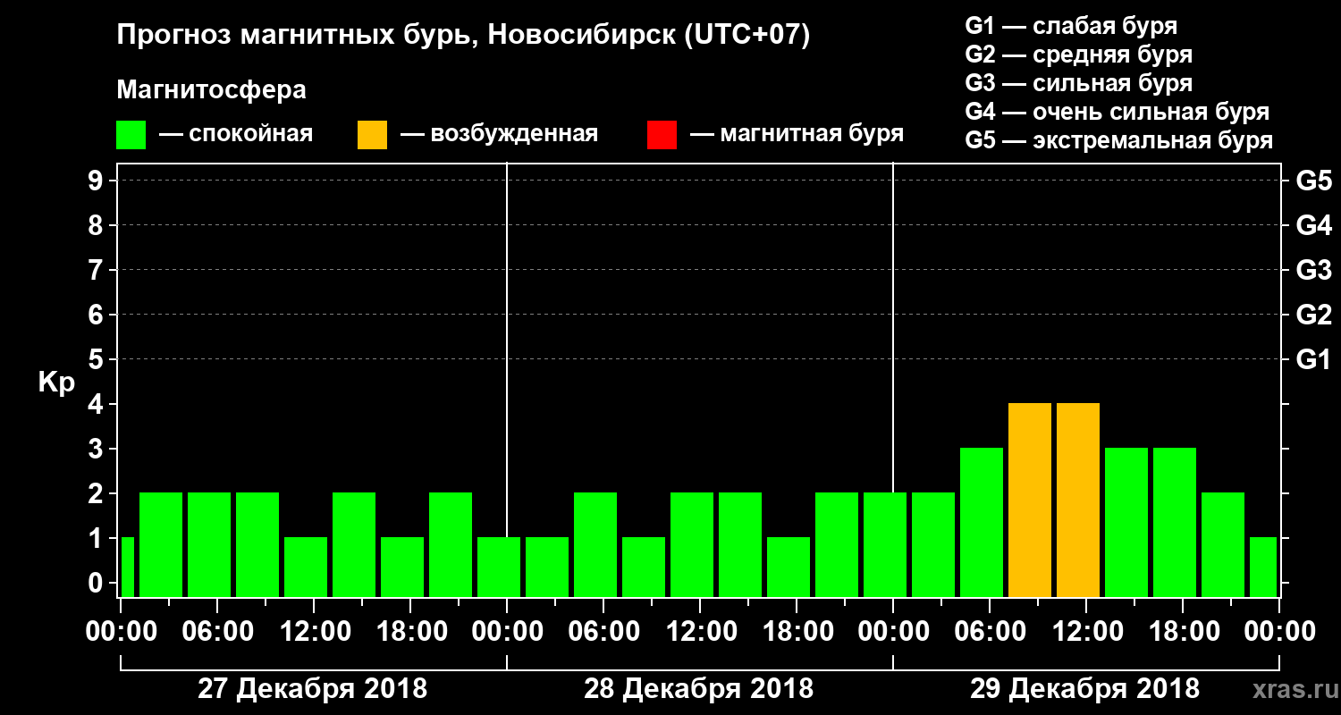 Прогноз магнитных бурь в Новосибирске — 27 декабря 2018 года