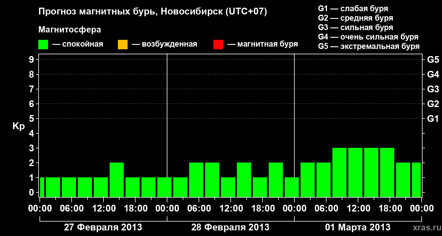 Прогноз магнитных бурь в Новосибирске — 27 февраля 2013 года