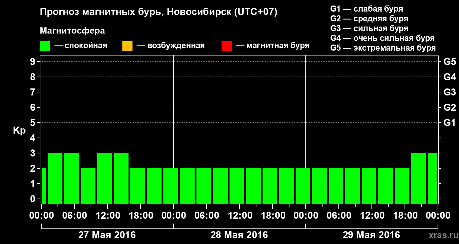 Прогноз магнитных бурь в Новосибирске — 27 мая 2016 года